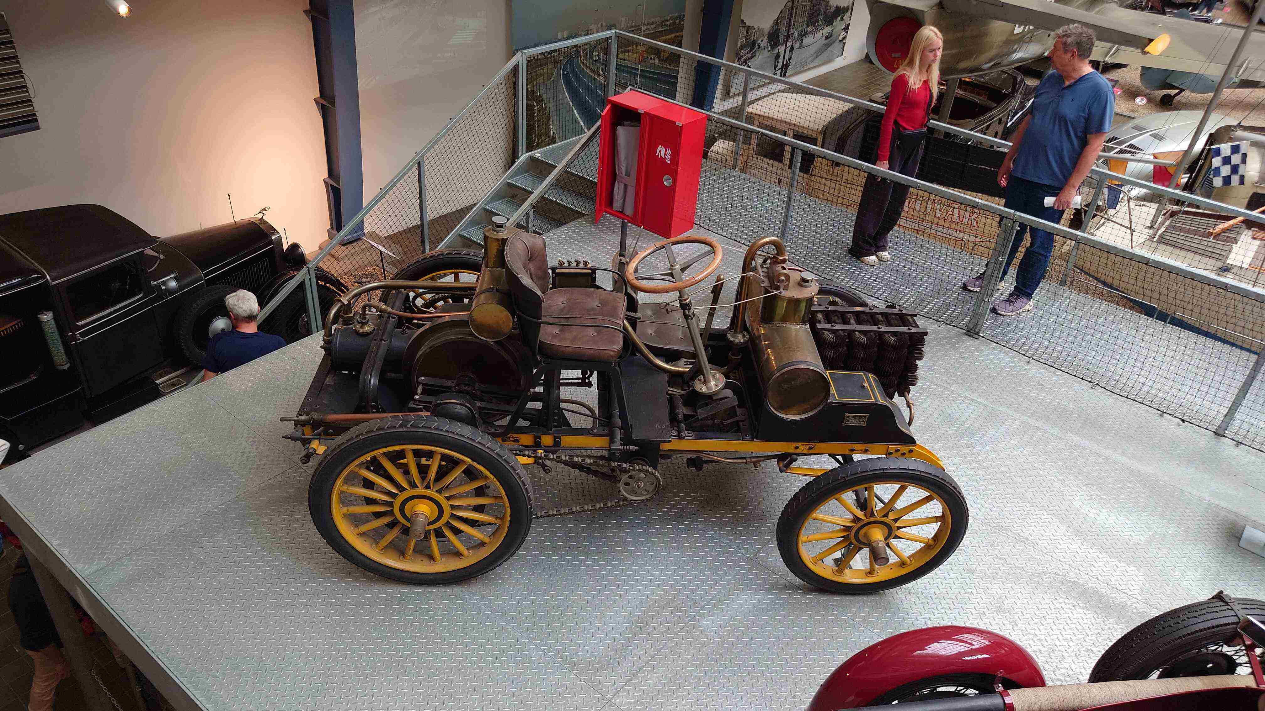 So, the planes, cars, and bikes were all placed in a single building. The cars were displayed on the ground alongside the planes. There were many different cars, including wooden ones, cars especially used by presidents, VIP cars, and more.